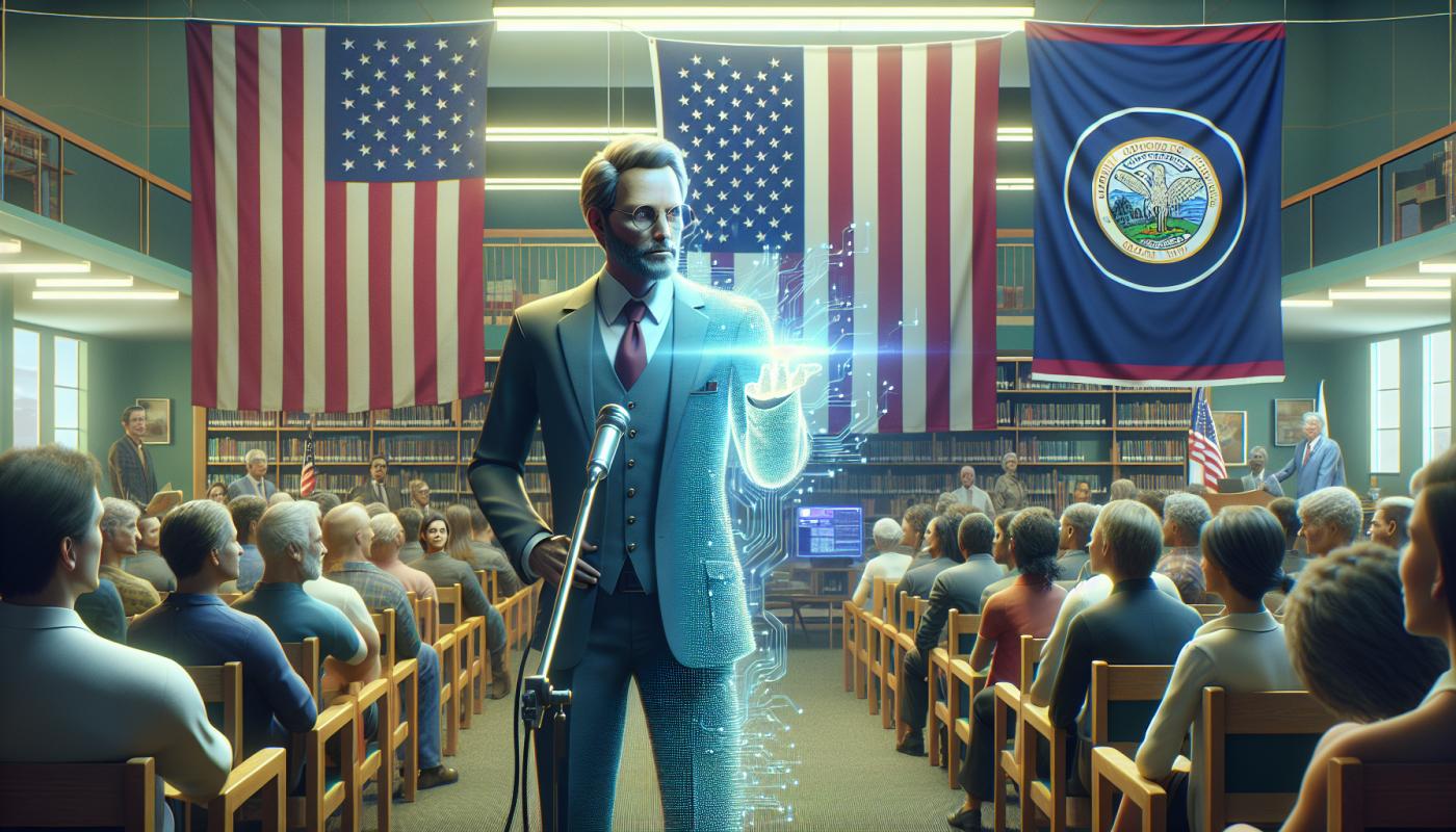Mayoral candidate Victor Miller, a bespectacled librarian with an AI obsession, stood between an American flag and a Wyoming flag, preaching what he sees as the untapped potential of artificial intelligence in government.AI would be objective.