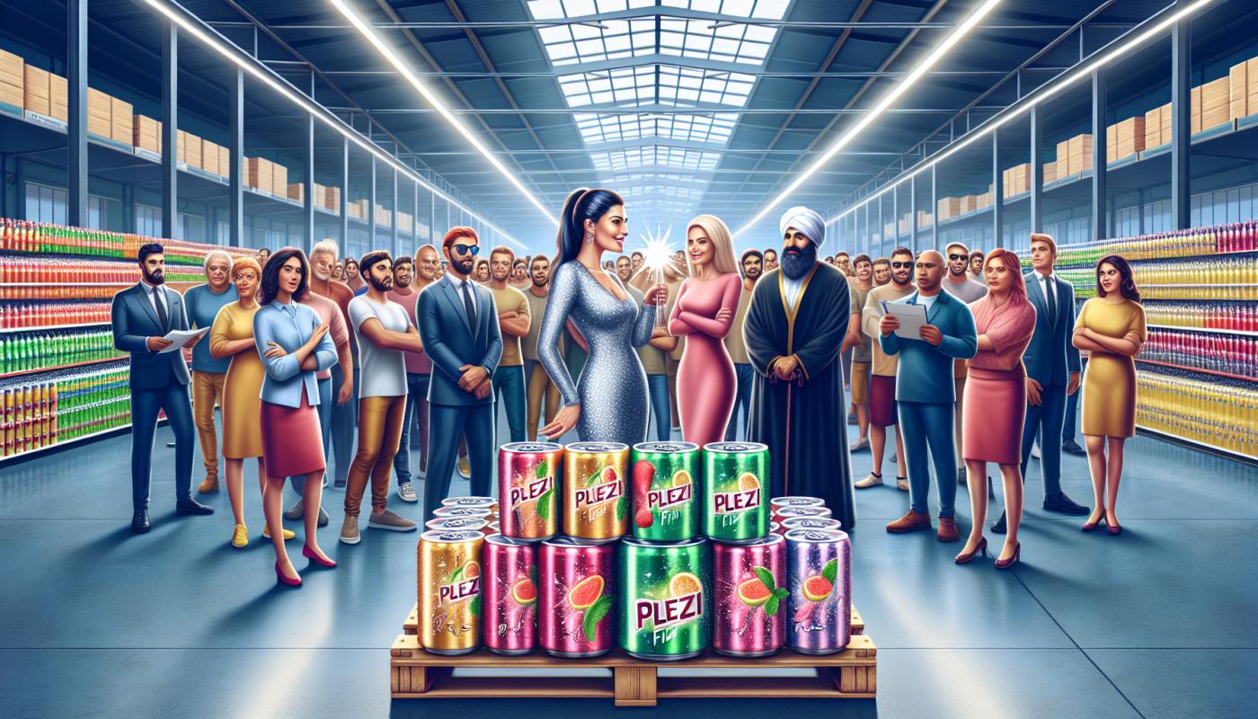 Shoppers were clearly buzzing as they gathered around Michelle, eagerly soaking up her Plezi Fizz pitch... while her serious-looking bodyguards stood by.